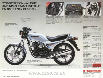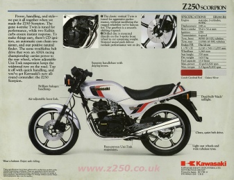 Z250T Scorpion specs. As they appeared in the 1988 Range brochure